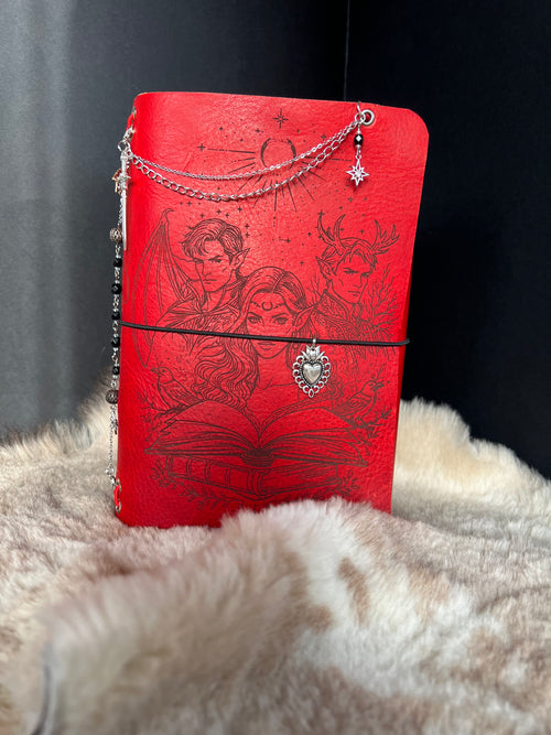 Kožený zápisník A5 - červená - LIMITKA - Acotar vibe - dlhá verzia